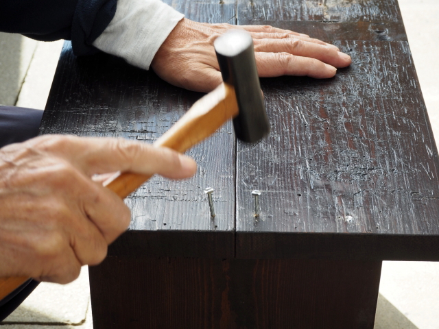 釘を打つ時に、最初は平らな面で打ってから、次に凸面で打つことで、釘の頭を木材に傷をつけずに沈めることができます。また、釘のサイズによって重さを変えると更に効率よく作業できます。